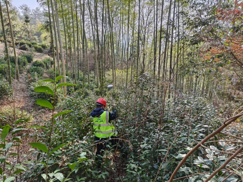 他們相互攙扶、輪番扛儀器,其中有幾個(gè)點(diǎn)在懸崖邊上,為了準(zhǔn)確了解場(chǎng)地現(xiàn)狀并采集準(zhǔn)確可靠的原地面數(shù)據(jù),他們摸索著前進(jìn)、爬上山頂。在山林中穿梭的測(cè)量人用腳步丈量著每一寸土地,用默默無(wú)言的付出、專業(yè)扎實(shí)的能力保障了項(xiàng)目建設(shè)的精度。
