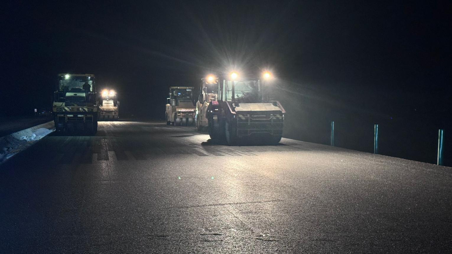 自開春以來,項(xiàng)目團(tuán)隊(duì)緊扣“保安全、提品質(zhì)、搶工期”目標(biāo),科學(xué)調(diào)配資源,優(yōu)化施工組織,掀起大干熱潮。通過“5+2”“白+黑”輪班作業(yè),白天機(jī)械轟鳴,夜晚燈火通明,以“分秒必爭”的勁頭攻克多項(xiàng)施工難點(diǎn)。截至目前,全線水穩(wěn)斷面已順利貫通,瀝青鋪設(shè)完成約90%,一季度計(jì)劃產(chǎn)值6800萬元,實(shí)際完成8100萬元,提前完成季度節(jié)點(diǎn)任務(wù),為后續(xù)工程推進(jìn)奠定堅(jiān)實(shí)基礎(chǔ)。
