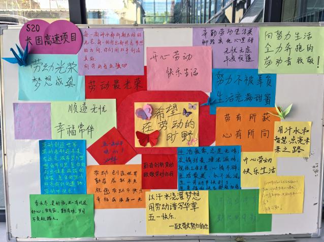 建工路港所屬各單位積極開展“致敬勞動者”主題活動,職工們寫下祝福語,向每一位堅守崗位的職工致以最崇高的敬意和最誠摯的祝福。