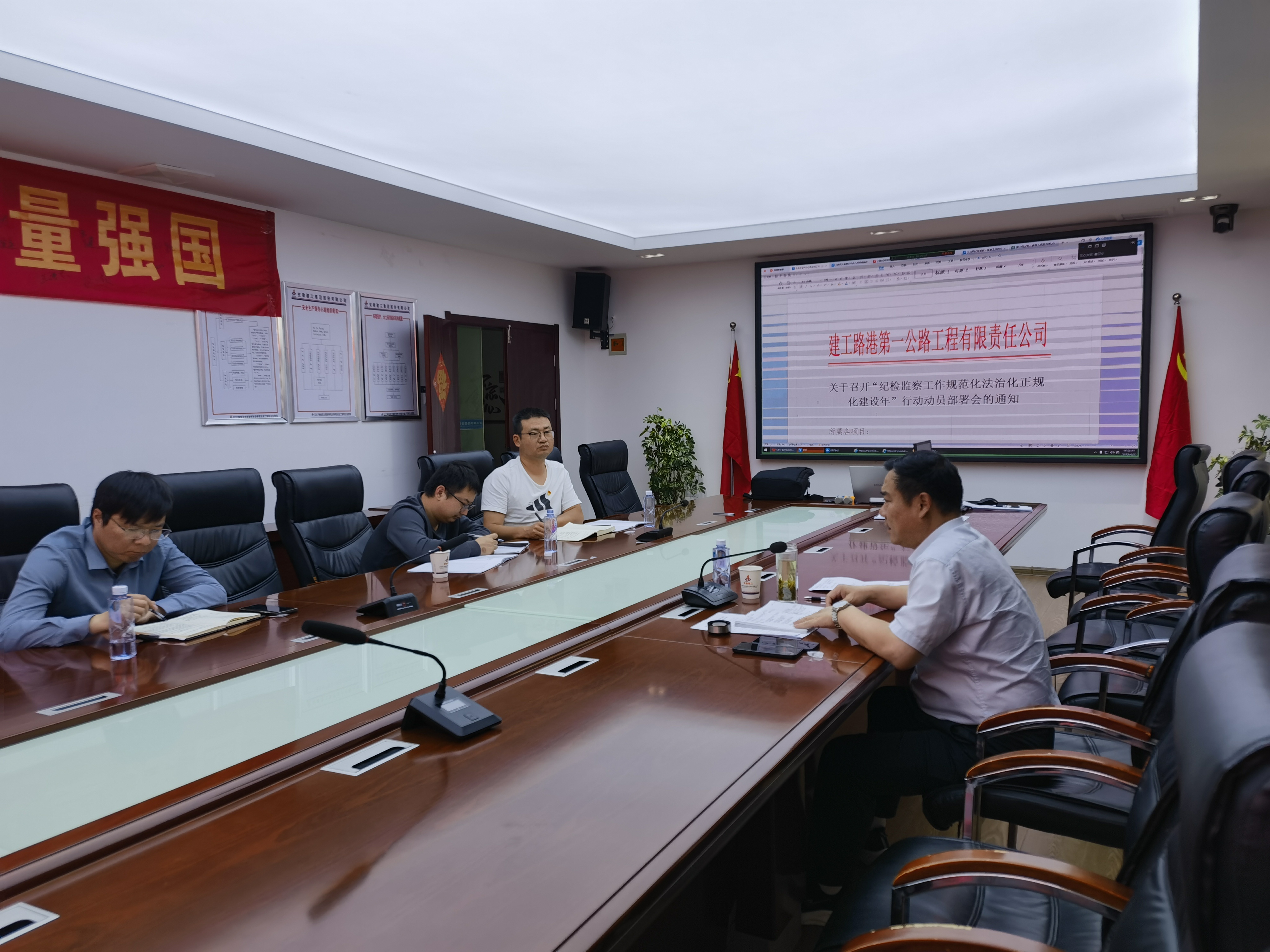 近日,第一公路工程公司通過“線上+線下”的方式召開“紀(jì)檢監(jiān)察工作規(guī)范化法治化正規(guī)化建設(shè)年”行動動員部署會。第一公路工程公司黨支部紀(jì)檢委員張善剛主持會議,所屬項目紀(jì)檢(委)員、廉潔監(jiān)督員參加。