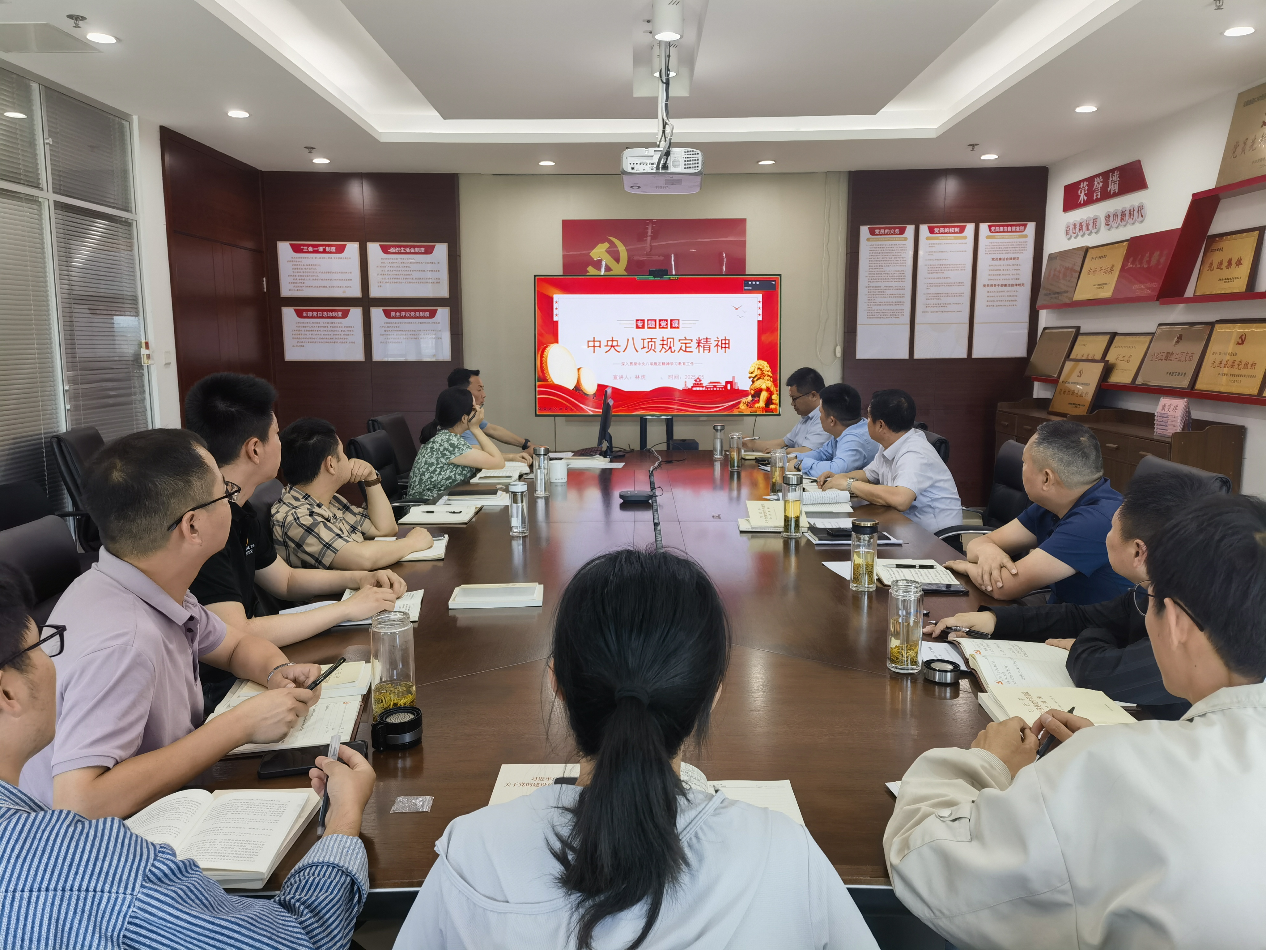 隨后,黨支部書記林虎以“深入貫徹中央八項(xiàng)規(guī)定精神學(xué)習(xí)教育”為主題為大家上了一堂生動(dòng)的黨課。他帶領(lǐng)大家學(xué)習(xí)了中央八項(xiàng)規(guī)定和中央八項(xiàng)規(guī)定精神的主要內(nèi)容,并結(jié)合公司實(shí)際,就如何在日常工作中貫徹落實(shí)中央八項(xiàng)規(guī)定精神進(jìn)行了深入淺出的闡述。