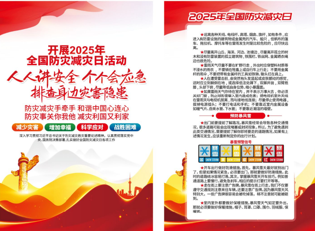 港航工程公司積極組織所屬項(xiàng)目職工學(xué)習(xí)《安徽省防災(zāi)減災(zāi)救災(zāi)委員會(huì)辦公室關(guān)于開展2025年全國防災(zāi)減災(zāi)日活動(dòng)的通知》并觀看防災(zāi)減災(zāi)科普視頻,進(jìn)一步加深職工對(duì)災(zāi)害應(yīng)對(duì)技能的理解和掌握。同時(shí),制作災(zāi)害防治宣傳標(biāo)語和展板,為職工發(fā)放常見災(zāi)害預(yù)防與應(yīng)對(duì)措施手冊(cè),積極營造濃厚的學(xué)習(xí)氛圍,增強(qiáng)全體職工的防災(zāi)減災(zāi)意識(shí)。
