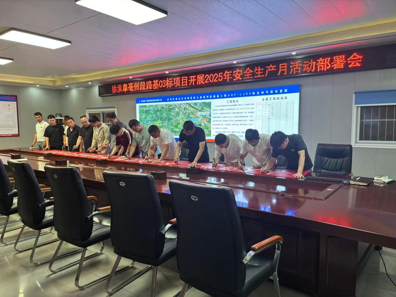 5月30日,徐淮阜亳州段路基03標項目召開專題會議,正式啟動以“人人講安全 個個會應急——查找身邊安全隱患”為主題的安全生產(chǎn)月活動。