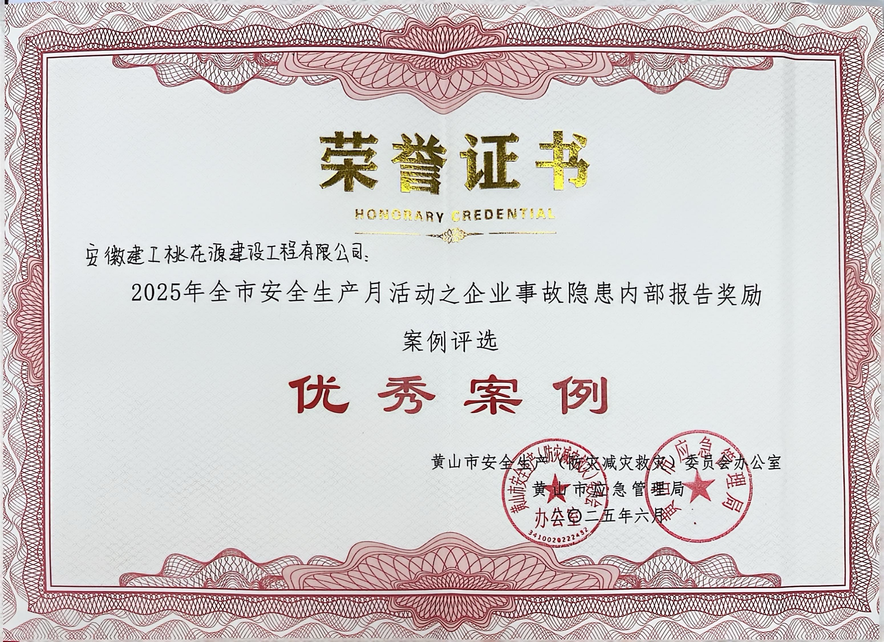 喜訊!建工路港公司黟縣全民健身中心項(xiàng)目榮獲“黃山市安全生產(chǎn)優(yōu)秀案例”獎(jiǎng)