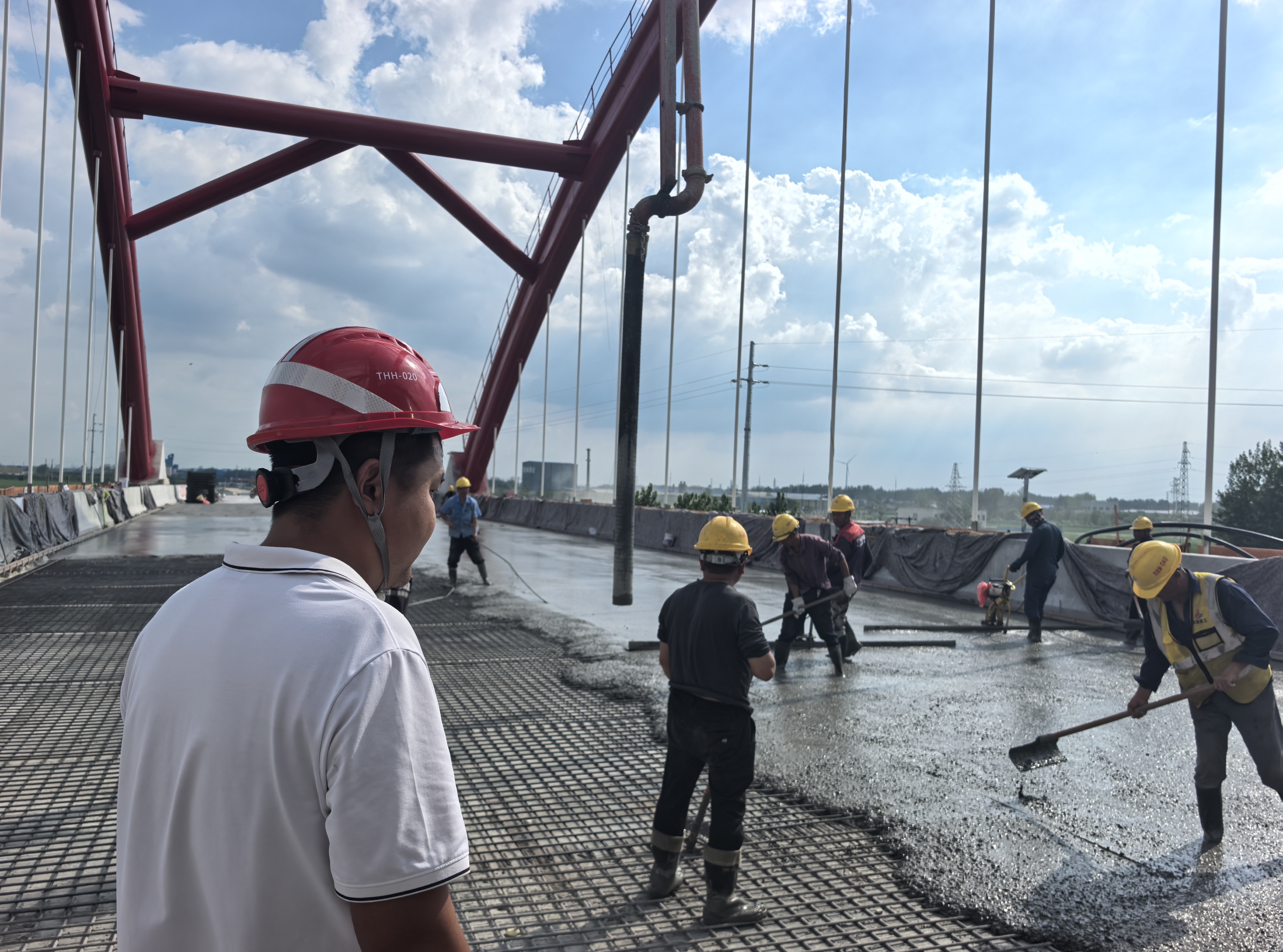 橋面鋪裝是確保橋梁耐久性和行車舒適性的核心環(huán)節(jié),精度要求極高。項(xiàng)目部采用覆蓋保濕、澆水養(yǎng)護(hù)等精細(xì)養(yǎng)護(hù)手段,確保每一寸橋面都達(dá)到優(yōu)質(zhì)標(biāo)準(zhǔn)。這一關(guān)鍵節(jié)點(diǎn)的攻克,不僅標(biāo)志著項(xiàng)目橋梁主體結(jié)構(gòu)全面進(jìn)入收尾階段,更是在持續(xù)多日的極端高溫“烤”驗(yàn)下,全體建設(shè)者以鋼鐵意志書寫的“戰(zhàn)高溫、保進(jìn)度”的動(dòng)人篇章。(圖文/詹同慶)