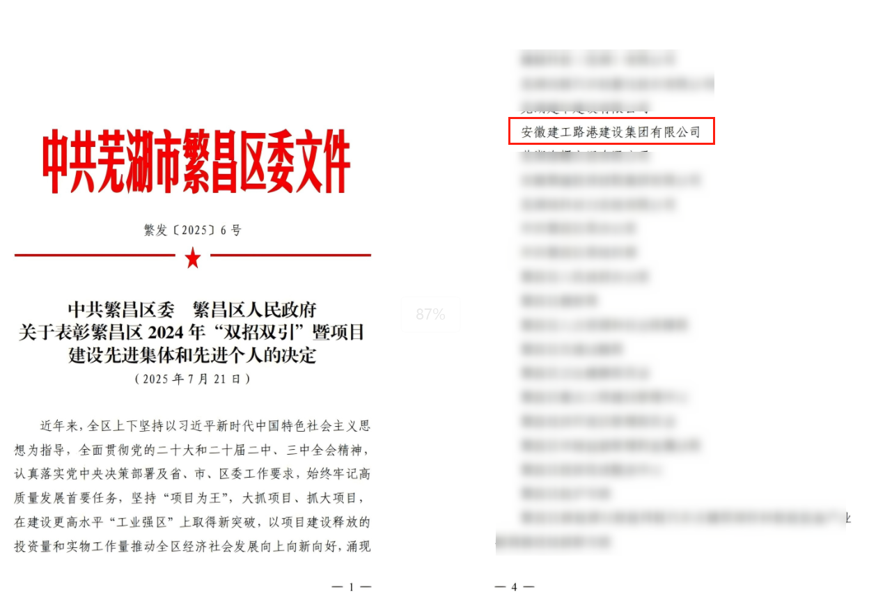 日前,繁昌區(qū)發(fā)改委會(huì)同區(qū)委組織部(人才辦)、區(qū)投促中心開(kāi)展2024年繁昌區(qū)“雙招雙引”暨項(xiàng)目建設(shè)先進(jìn)集體和先進(jìn)個(gè)人評(píng)選并公布了表彰名單,建工路港公司榜上有名。