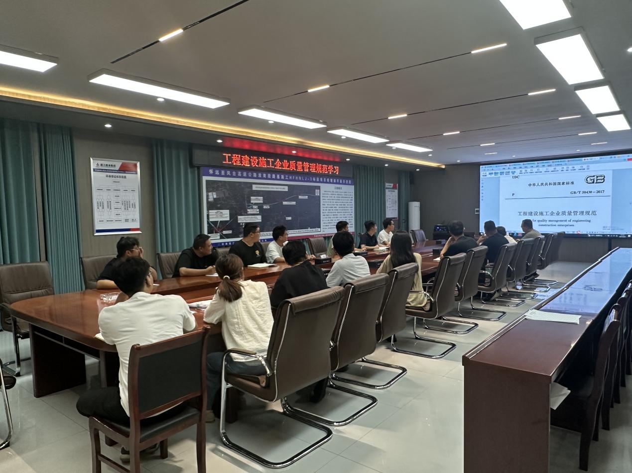 9月9日,懷鳳高速03標項目組織開展質(zhì)量月“工程建設施工企業(yè)質(zhì)量管理規(guī)范”學習討論會,項目領導班子及全體職工參會。