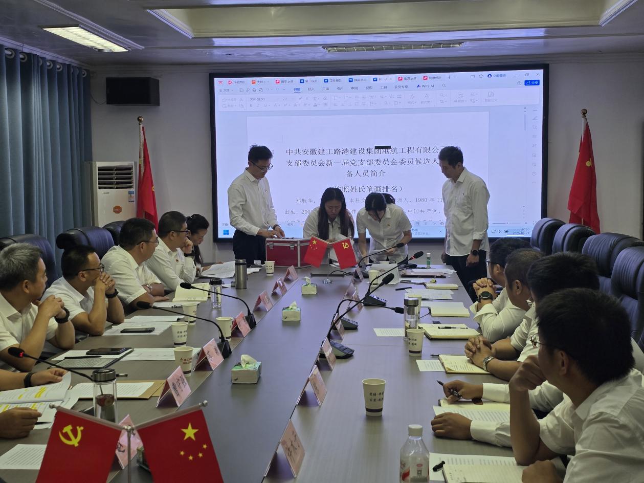 為深入貫徹落實新時代黨的建設總要求,進一步加強基層黨組織建設,港航工程公司黨支部于9月21日晚召開換屆選舉會議,公司黨委委員、副總經理、總工程師蘇穎,黨委委員、組織部部長何畏到會指導。