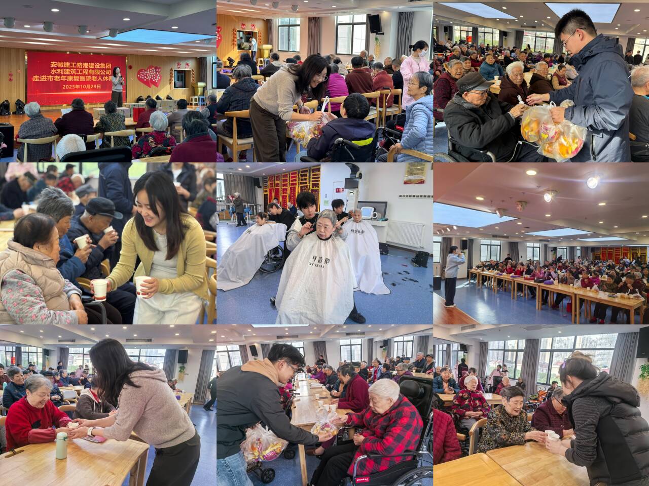 為大力弘揚中華民族尊老、敬老、愛老、助老的傳統(tǒng)美德,踐行國有企業(yè)的社會責(zé)任與擔(dān)當(dāng),10月29日,水利建筑工程公司職工組成志愿者服務(wù)隊前往蚌埠市老年康復(fù)醫(yī)院老人休養(yǎng)中心,開展以“九九重陽送溫暖,敬老愛老情意濃”為主題的愛心志愿服務(wù)活動,為老人們送上了節(jié)日的問候與誠摯的祝福。