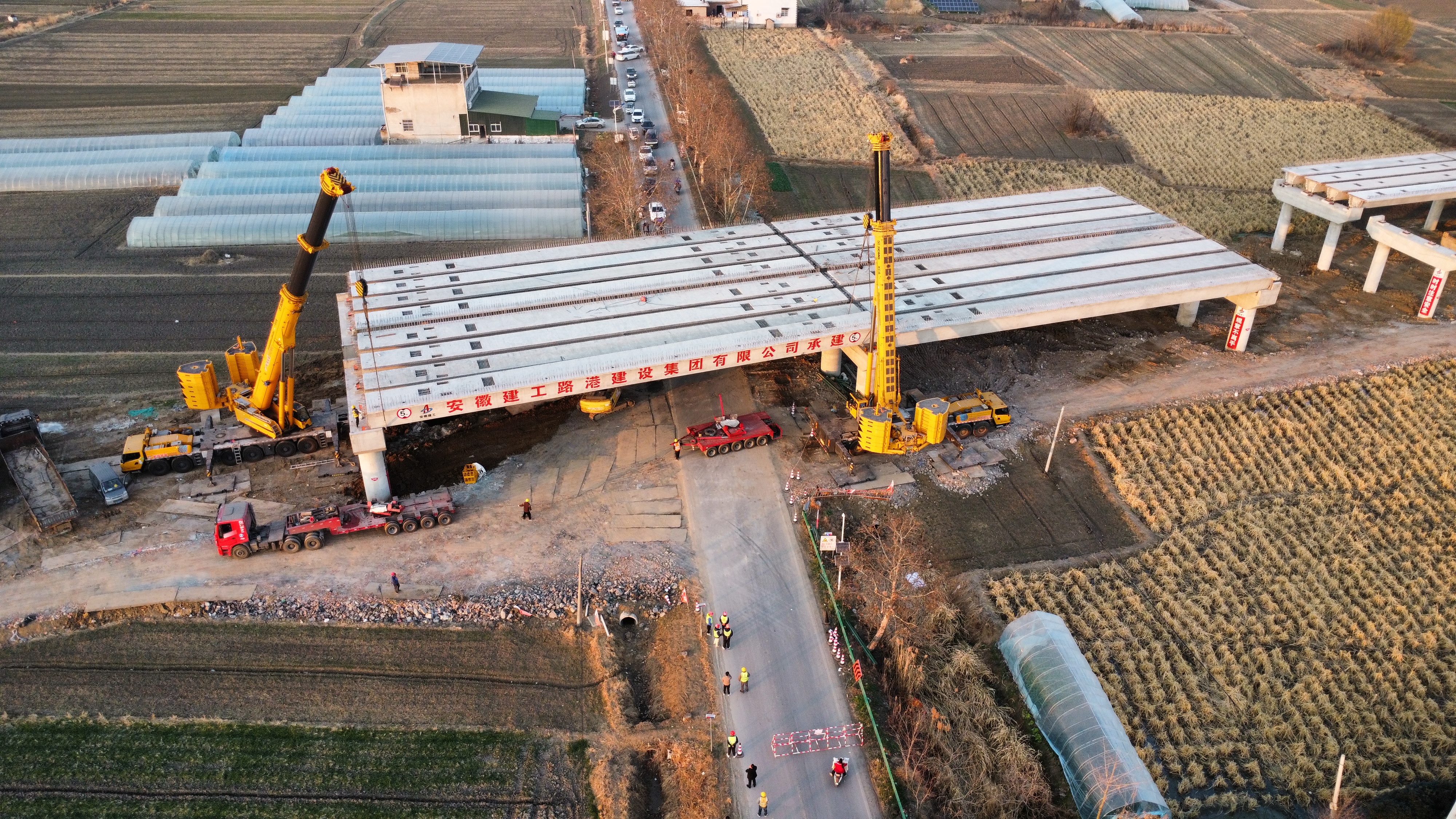 本次架設(shè)的40米箱梁?jiǎn)误w重量大,且上跨省道239,施工安全要求高、交通導(dǎo)改復(fù)雜。懷鳳高速03標(biāo)項(xiàng)目部科學(xué)籌劃,制定了詳盡的專項(xiàng)施工與交通組織方案。施工過程中,現(xiàn)場(chǎng)指揮、技術(shù)、安全人員全程盯控,大型吊裝設(shè)備精準(zhǔn)操作,各方緊密配合,確保了箱梁起吊、運(yùn)輸、旋轉(zhuǎn)、落位各個(gè)環(huán)節(jié)安全可控,有效減少了對(duì)既有道路交通的影響,實(shí)現(xiàn)了安全、精準(zhǔn)、高效的施工目標(biāo)。