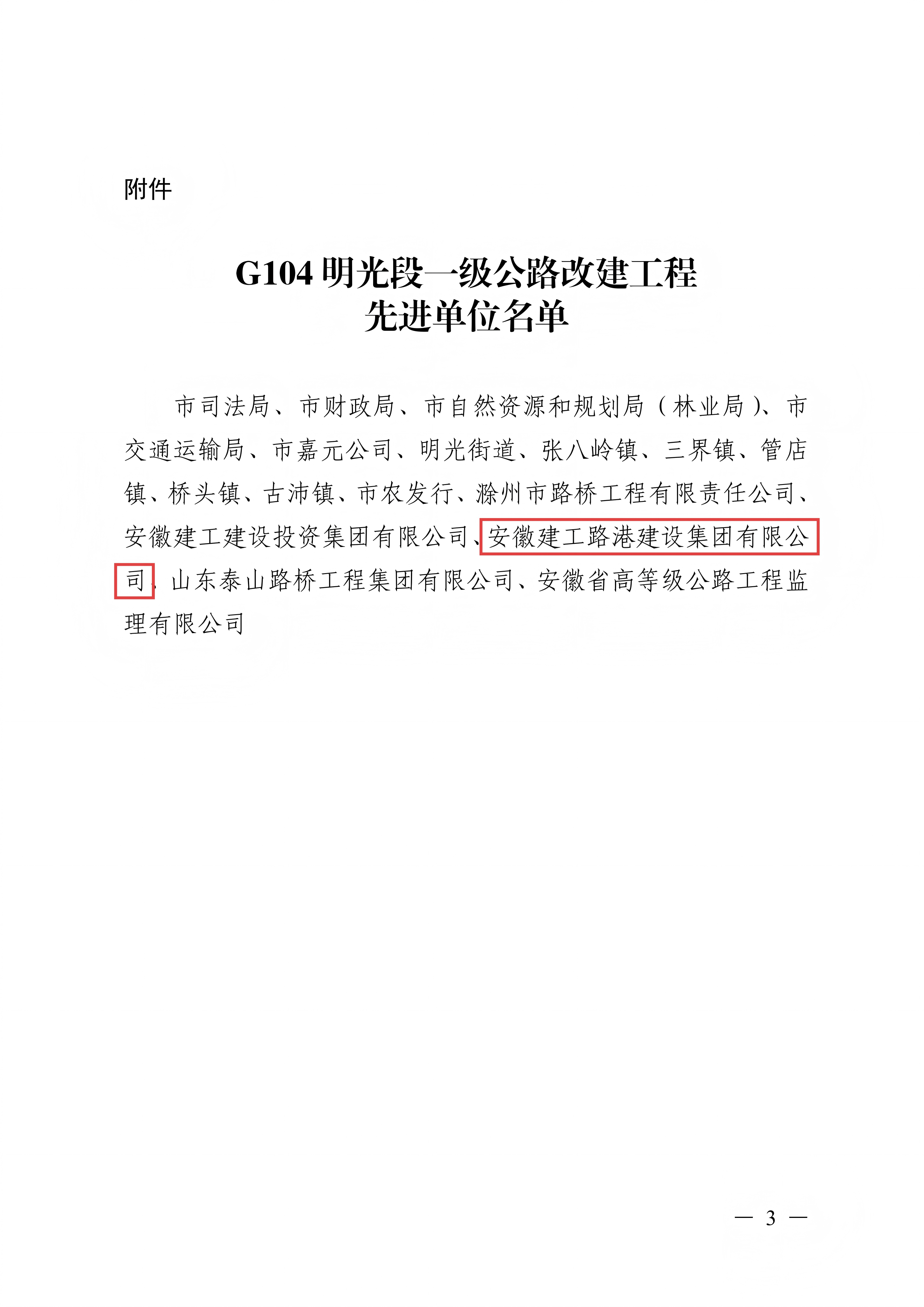 凝心聚力創(chuàng)佳績(jī) 砥礪奮進(jìn)譜新章 ——明光G104三標(biāo)段項(xiàng)目榮獲“先進(jìn)單位”榮譽(yù)稱號(hào)