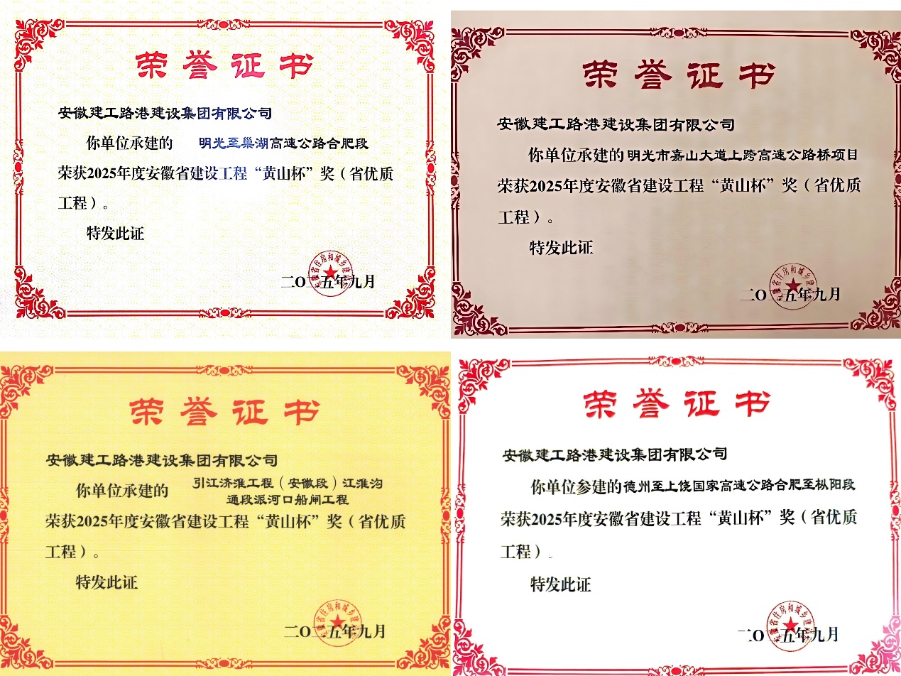 近日,2025年度安徽省建設(shè)工程“黃山杯”獎(jiǎng)?wù)浇視裕üぢ犯酃久鞴庵脸埠咚俟泛戏识巍⒚鞴馐屑紊酱蟮郎峡绺咚俟窐蝽?xiàng)目、引江濟(jì)淮工程(安徽段)江淮溝通段派河口船閘工程、德州至上饒國(guó)家高速公路合肥至樅陽(yáng)段4個(gè)項(xiàng)目,榮獲2025年度“黃山杯”獎(jiǎng)(省優(yōu)質(zhì)工程)。其中明光至巢湖高速公路合肥段、明光市嘉山大道上跨高速公路橋2個(gè)項(xiàng)目更以卓越品質(zhì)入選“黃山杯”精品工程冊(cè),成為全省質(zhì)量標(biāo)桿。