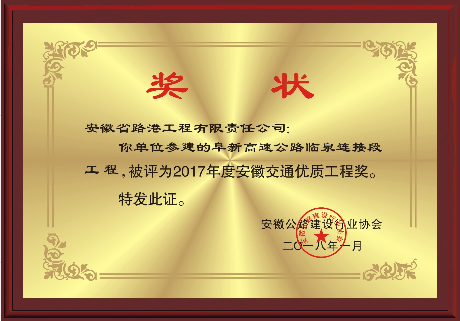 2017年度安徽省交通優(yōu)質(zhì)工程獎