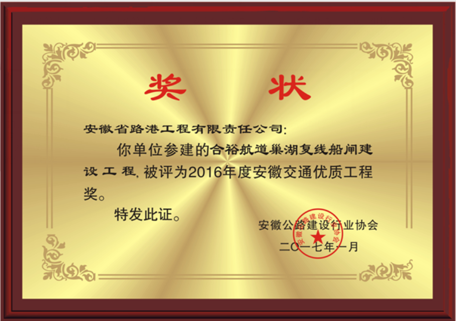 2016年度安徽省交通優(yōu)質(zhì)工程獎(jiǎng)