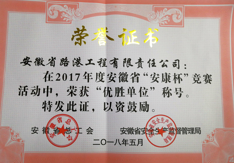 安徽省“安康杯”競(jìng)賽優(yōu)勝單位
