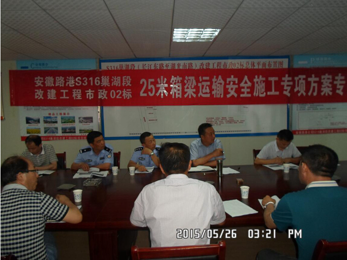 5月26日下午,在S316裕溪河特大橋工程項目部召開了S316裕溪河特大橋南岸25m箱梁運輸安全施工專項施工方案專家評審會。
