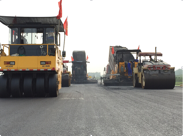 7月7日蚌寧連接線路面02標項目在K17+000―K17+500段左幅進行了瀝青混凝土下面層試驗段攤鋪。經(jīng)過近5小時的連續(xù)施工,順利地完成了試驗段鋪筑。