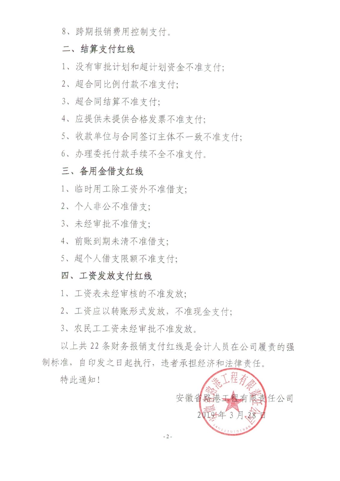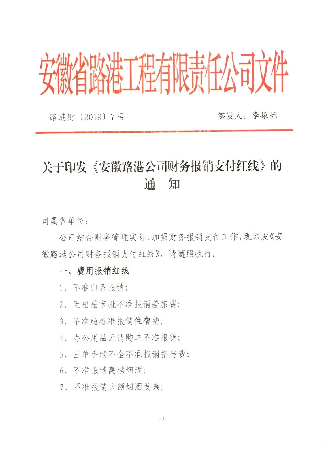 關(guān)于印發(fā)《安徽路港公司財(cái)務(wù)報(bào)銷支付紅線》的通知