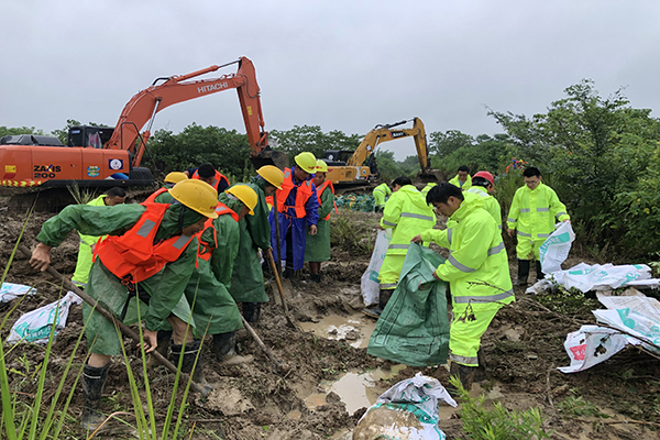 “奮勇?lián)?dāng),爭(zhēng)當(dāng)防汛救災(zāi)的急先鋒?!?/span>受持續(xù)強(qiáng)降雨影響,派河水位全線告急。汛情就是命令,市政分公司、港航設(shè)計(jì)院、來(lái)安項(xiàng)目部廣大青年聞“汛”而動(dòng)、破“浪”而來(lái),組建“青年突擊隊(duì)”,于7月19日緊急奔赴派河口船閘項(xiàng)目。派河圍堤旁,大家都卯足了勁裝沙袋、扛沙袋、運(yùn)沙袋,抗最重的袋子、鏟更多的沙土。不停歇的大雨、長(zhǎng)時(shí)間的搶險(xiǎn)工作和立即聞?dòng)嵹s來(lái)的舟車勞頓并沒(méi)有削弱抗洪者們的斗志,他們以強(qiáng)有力的精神支撐自己,迎難而上,展現(xiàn)國(guó)有企業(yè)的社會(huì)擔(dān)當(dāng),充分發(fā)揮青年先鋒作用。