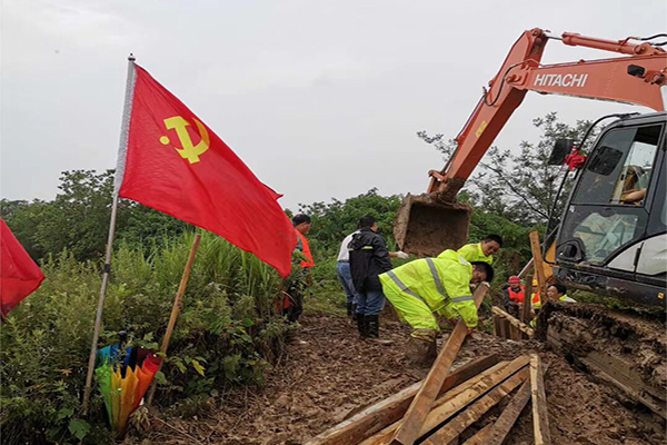 “黨旗所指就是團(tuán)旗所向?!?/span>市政分公司興業(yè)大道項(xiàng)目部收到當(dāng)?shù)卣笾骸半U(xiǎn)情告急!合肥市蜀山區(qū)小廟鎮(zhèn)小蜀山支渠決堤了!”該分公司青年突擊隊(duì)在黨員干部的帶領(lǐng)下,火速奔赴現(xiàn)場(chǎng),配合當(dāng)?shù)卣舛滦∈裆街Q堤口。經(jīng)過(guò)長(zhǎng)達(dá)8小時(shí)的不懈努力,小蜀山支渠決堤的險(xiǎn)情終于得到了有效控制,決堤潰口封堵成功。黨有號(hào)召,團(tuán)有行動(dòng),兩面紅旗共同飄揚(yáng)在防汛一線。