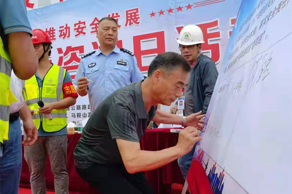 最后,項(xiàng)目辦主任帶領(lǐng)參建單位人員進(jìn)行安全生產(chǎn)宣誓和誓言簽名,參建各單位承諾,齊心協(xié)力共建寧蕪高速改擴(kuò)建項(xiàng)目,努力打造“平安百年品質(zhì)工程”。