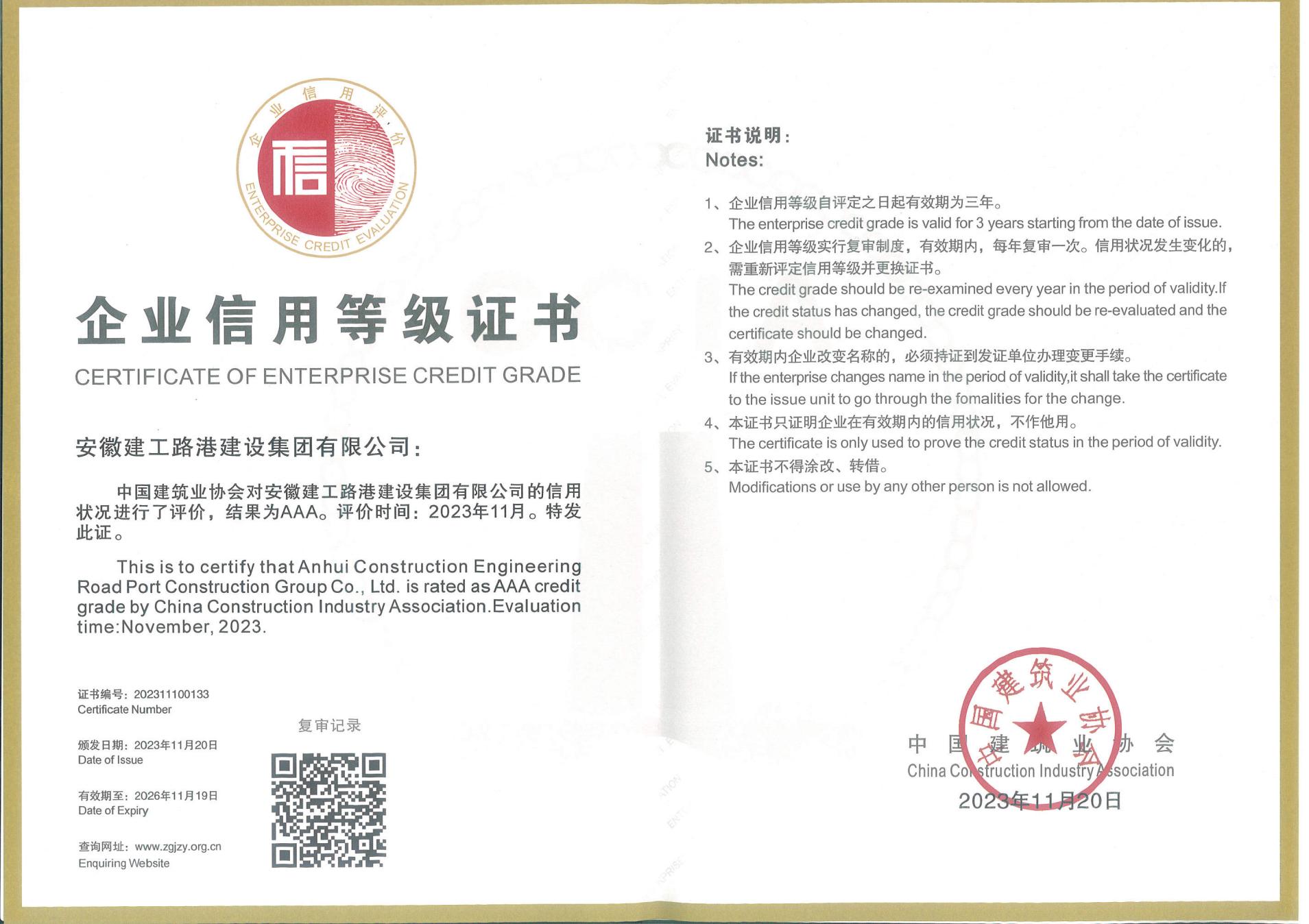 中國建筑業(yè)協(xié)會企業(yè)信用等級證書AAA