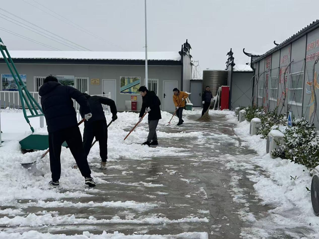在項(xiàng)目領(lǐng)導(dǎo)班子帶領(lǐng)下,全體員工不畏嚴(yán)寒,積極主動(dòng)投入到掃雪除冰工作中。大家手持鐵鍬、掃帚等工具,分工協(xié)作,配合默契,重點(diǎn)對(duì)項(xiàng)目部主要出入口、停車場(chǎng)、生活區(qū)及連接道路的積雪積冰進(jìn)行徹底清理。現(xiàn)場(chǎng)忙碌有序,氣氛熱烈。