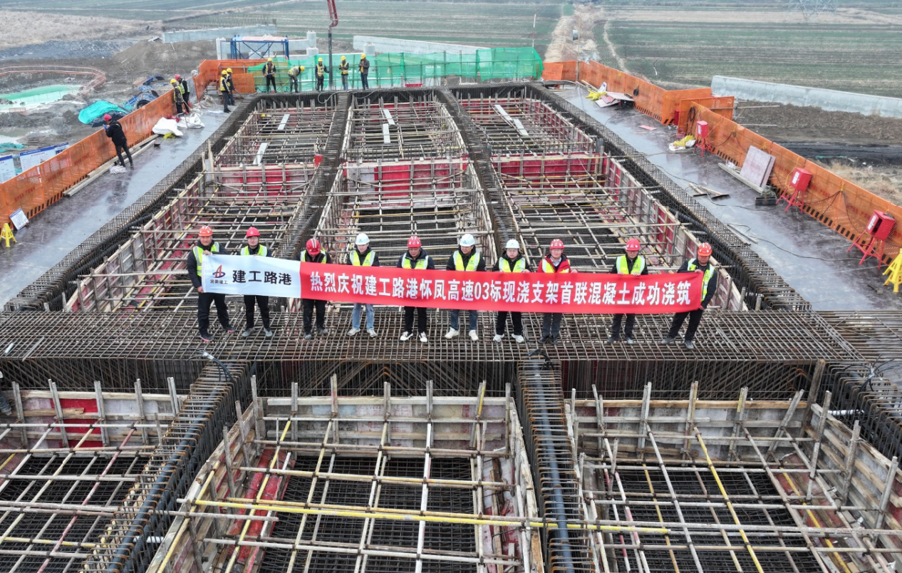 1月28日,建工路港懷鳳高速淮南段路基施工03標(biāo)項(xiàng)目取得關(guān)鍵性進(jìn)展——現(xiàn)澆支架首聯(lián)箱梁混凝土成功完成澆筑,標(biāo)志著項(xiàng)目橋梁上部結(jié)構(gòu)施工正式拉開序幕。