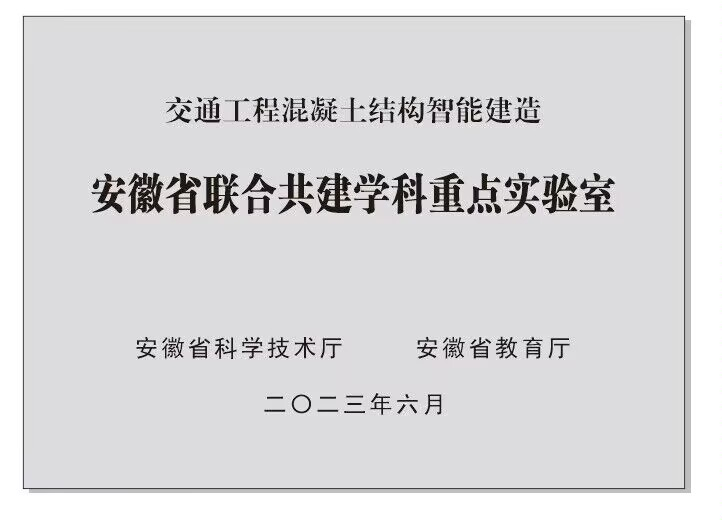 交通工程混凝土結(jié)構(gòu)智能建造安徽省聯(lián)合共建學(xué)科重點實驗室是經(jīng)安徽省科學(xué)技術(shù)廳、安徽省教育廳批準(zhǔn)(皖科基地秘〔2023〕108號),于2023年4月設(shè)立的省級重點實驗室。本實驗室由安徽建工路港建設(shè)集團(tuán)有限公司(原安徽省路港工程有限責(zé)任公司)依托建設(shè),合肥工業(yè)大學(xué)共建,是安徽省首批校企聯(lián)合共建學(xué)科重點實驗室。實驗室聚焦交通工程混凝土結(jié)構(gòu)智能建造全鏈條創(chuàng)新,涵蓋基礎(chǔ)理論研究、智能建造技術(shù)開發(fā)、高端裝備研發(fā)及綠色建材應(yīng)用四大方向,致力于打造國內(nèi)一流、國際先進(jìn)的科研平臺。